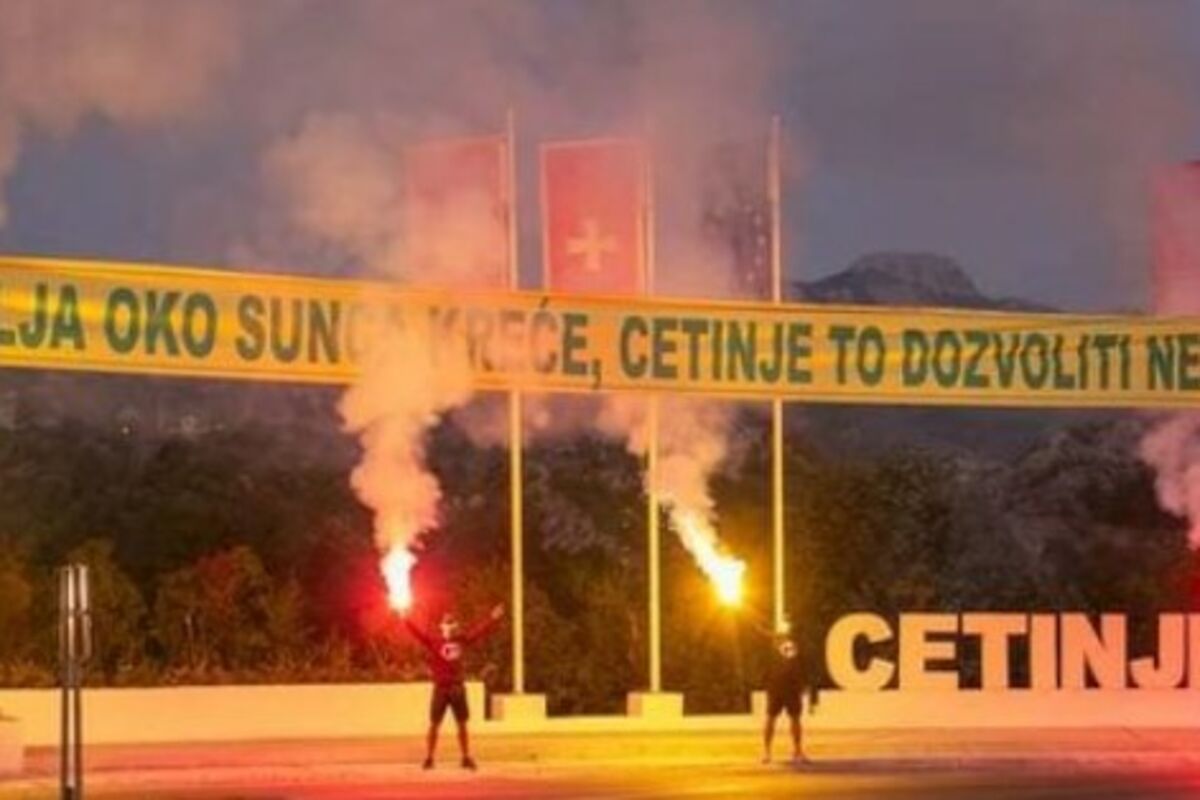 Transparent "Dok se zemlja oko Sunca kreće, Cetinje to dozvoliti neće", postavljen je na samom ulazu u grad.