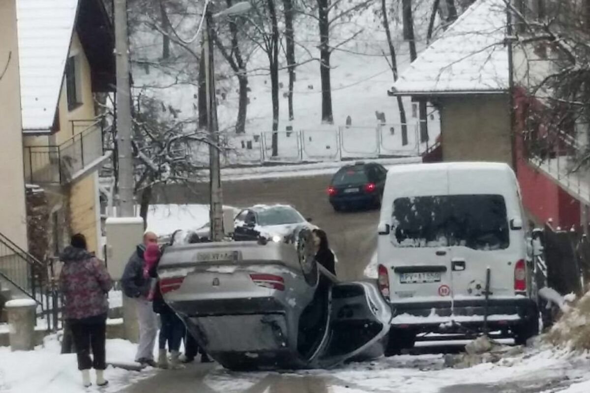 IZNENADIO IH SNEG: Automobil u Pljevljima ZAVRŠIO NA KROVU! (FOTO)