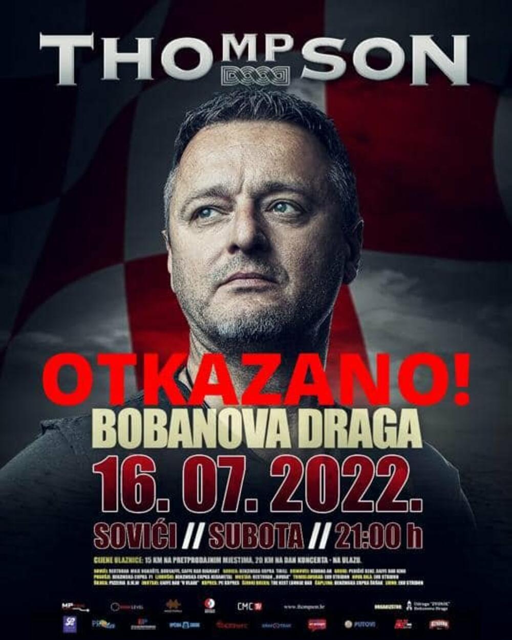 Zbog iznenadne okolnosti u porodici Marka Perkovića Tompsona, popularni pevač je morao da otkaže koncert u Bobanovoj Dragi koji je trebalo da održi u subotu 16.07.2022.