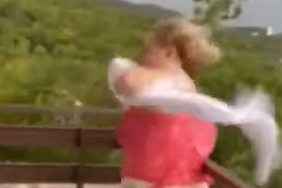 Na jednom snimku vidi se kako je ženu zamalo oduvao snažan vetar.
