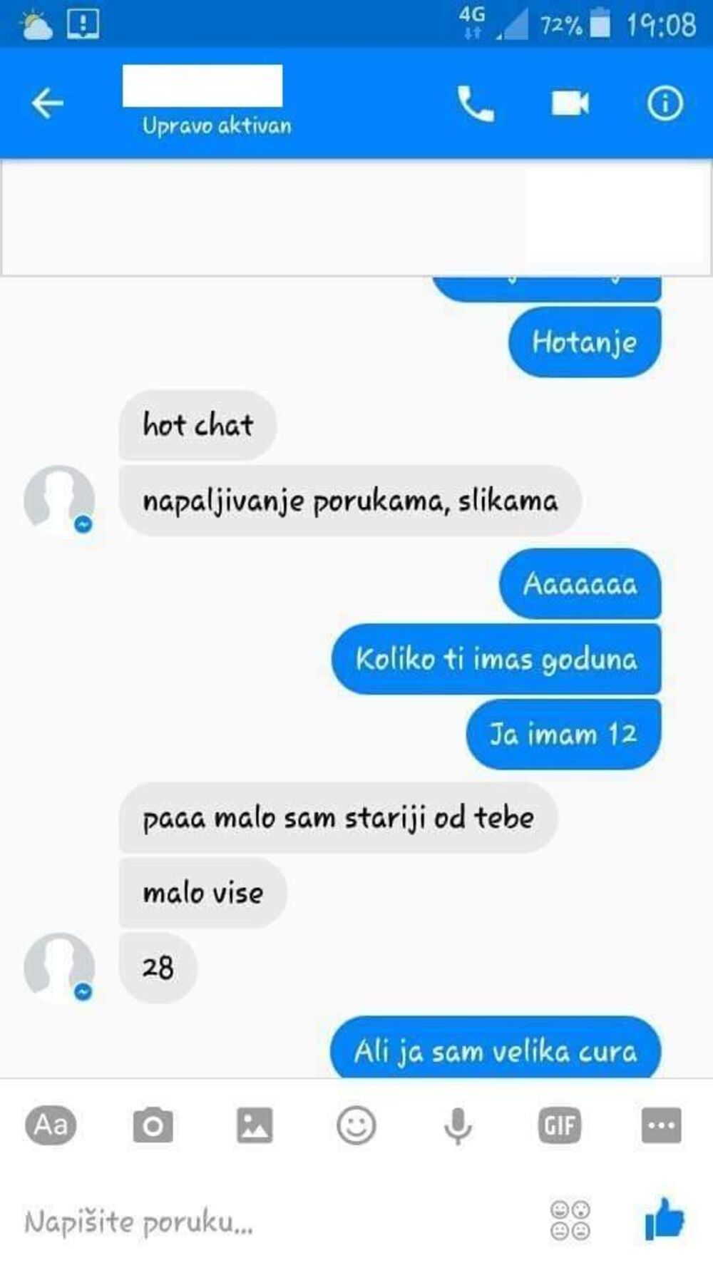 - Dotični muškarac prvo se putem Fejsbuka upustio u razgovor s devojčicom, poslao joj svoju fotografiju, a potom od nje tražio da uradi isto. Ubrzo nakon toga poslao joj je i dve slike svog polnog organa. Celo vreme ju je ispitivao gde joj je majka i probao je namamiti da se i ona skine.