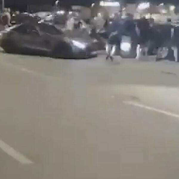 Na uznemirujućem snimku vidi se kako je automobil naleteo na ljude. Mladić koji je udaren među prvima imao je nešto u ruci, čini se kao plastična čaša. Taj predmet odleteo 20-ak metara u vazduh, piše portal 24 sata.