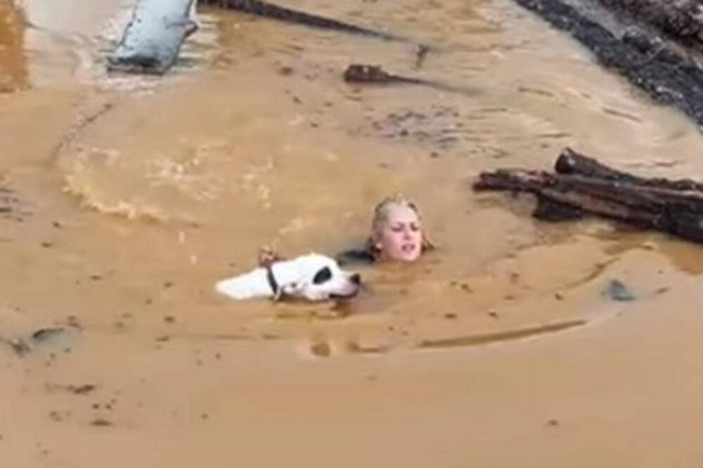 Koliko ljubav prema životinjama može biti velika najbolje pokazuje nedavni snimak nastao u Hrvatskoj, kada je jedna Sanja, prilikom obilnih kiša koje su nedavno pogodile područje Kimpi kod grada Krka, ušla u bujicu kako bi spasila svoja dva psa.