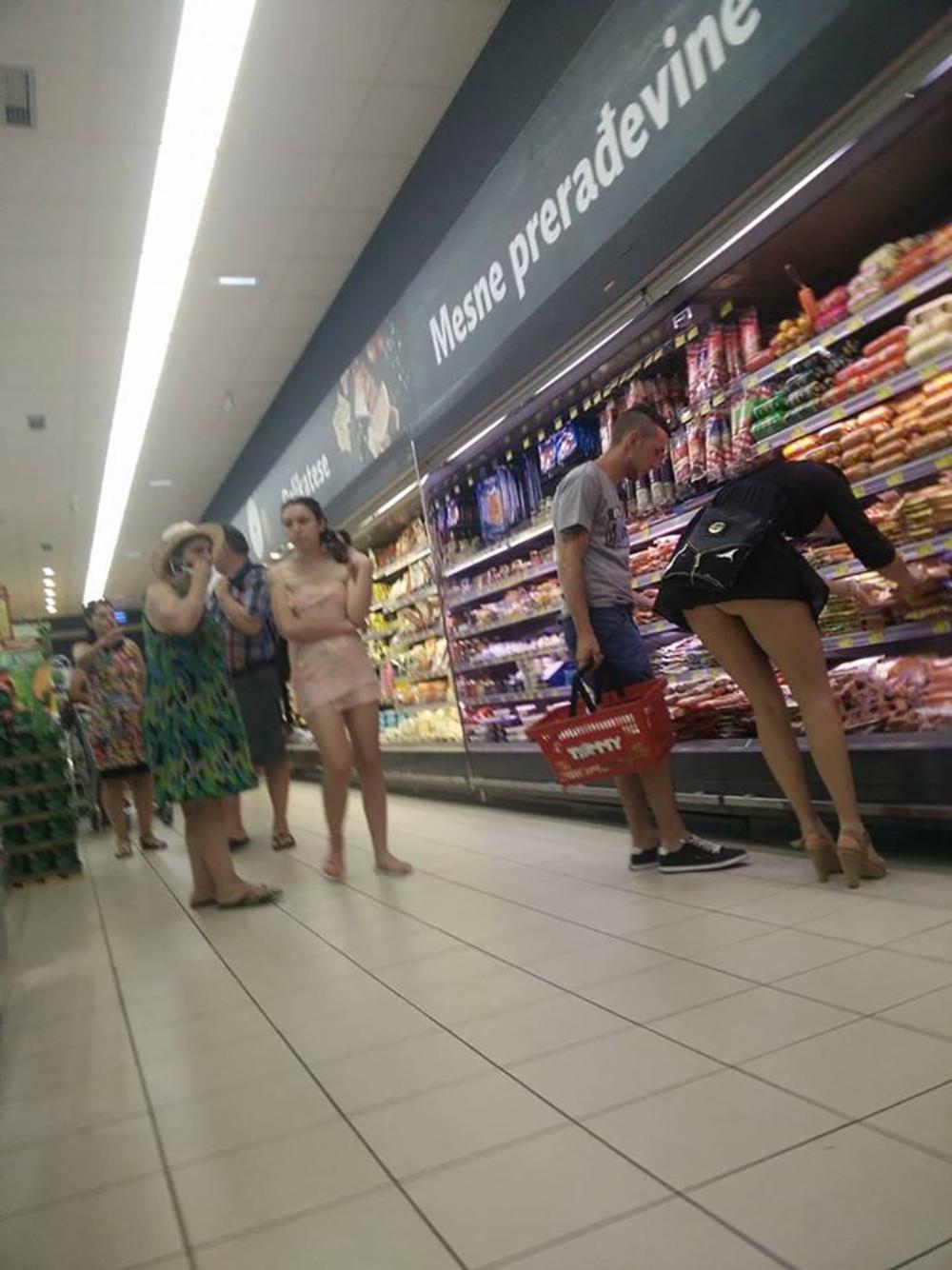 Tako je jedna devojka u Hrvatskoj uslikana u trenutku kad se sagla da uzme salamu, u kratkoj haljini i bez gaćica, gde je pokazala baš sve, i nije je bilo briga!