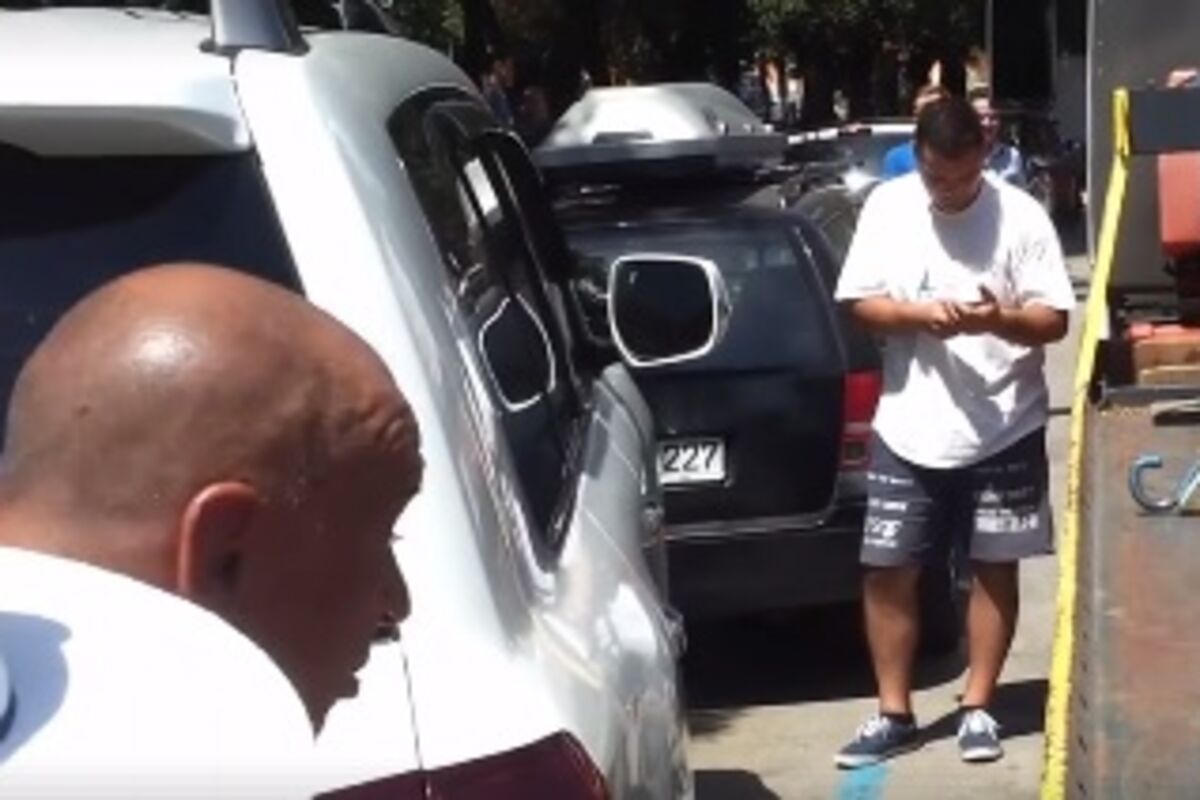 Ruski državljanin je nekoliko puta fizički odgurnuo radnika pauk službe, ali nije došlo do težeg incidenta. Na kraju videa čuje se glasan zvuk, a automobil je pao na put.