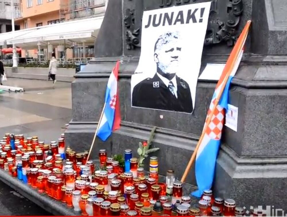 Zagrepčani prilaze, odaju poštu osuđenom generalu koji je izvršio samoubistvo, i pale sveće koje ostavljaju ispod slike Slobodana Praljka na kojoj piše "junak". Praljkova smrt podelila je javnost, pa dok je za jedne samo osuđeni zločinac koji je izvršio samoubistvo, za druge je, sudeći i po ovom gestu, očigledno junak.