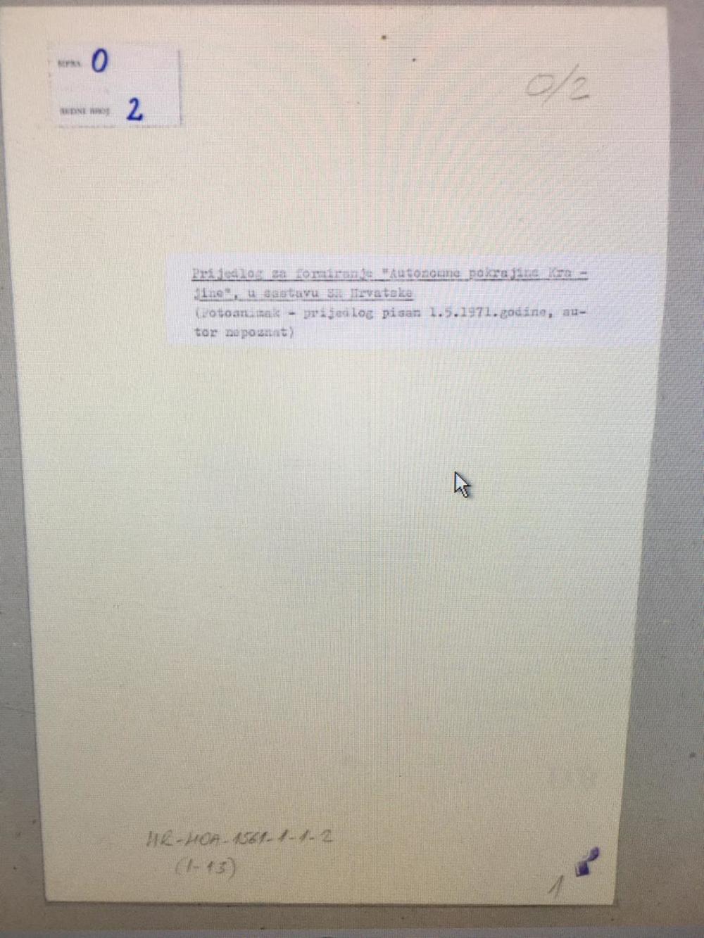 U arhivu nema papirnate kopije pamfleta o potrebi ozbiljnog širenja političkih prava Srba u Hrvatskoj, već se nalazi samo foto-elaborat.