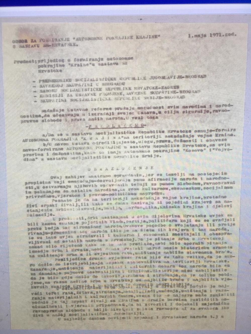 OBJAVLJEN SUPERTAJNI DOKUMENT BIVŠE SFRJ: Ovo je predlog o OSNIVANJU SRPSKE KRAJINE 1971. GODINE! (FOTO)