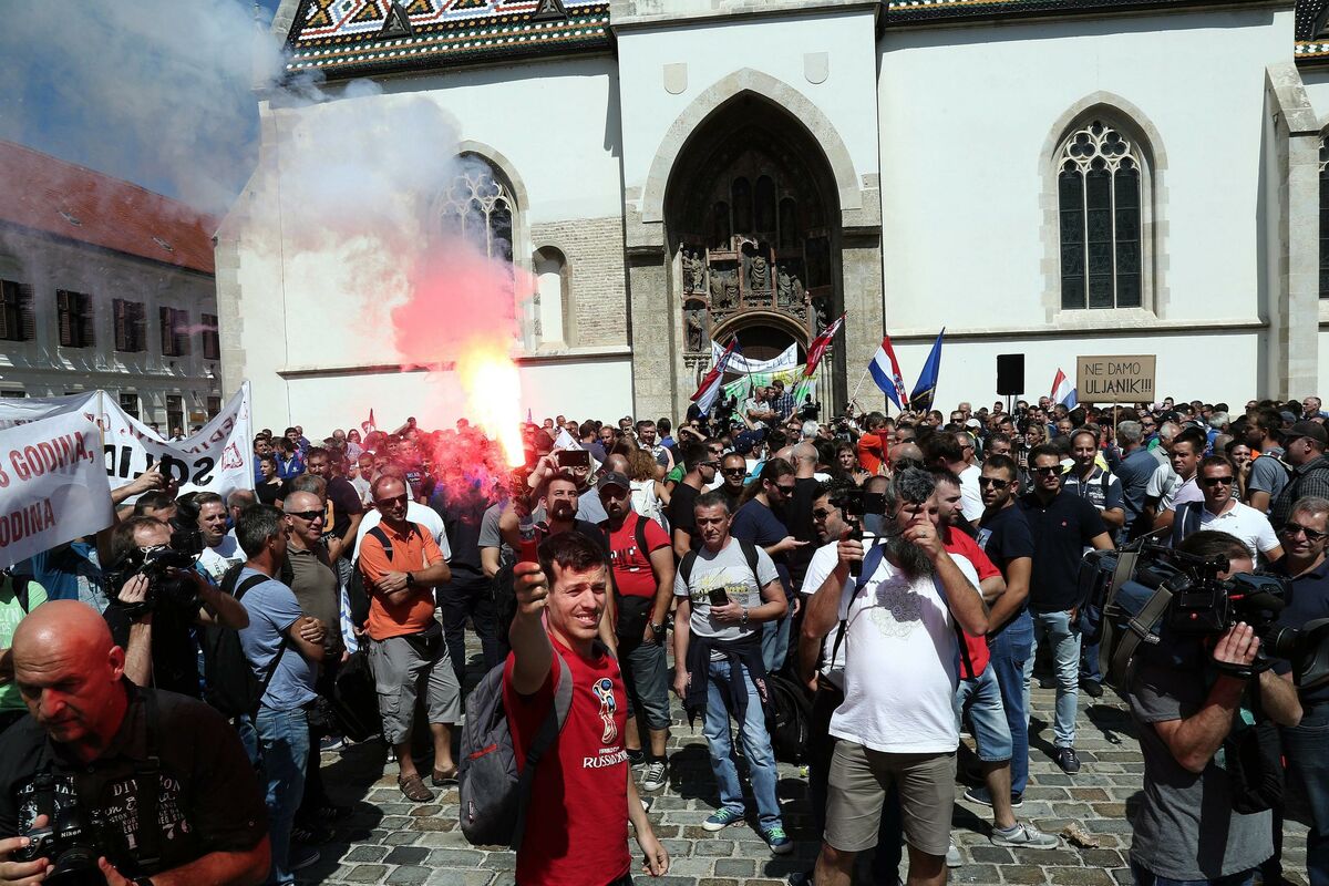 U Zagreb je u ponedjeljak stiglo skoro hiljadu radnika riječkog brodogradilišta 3. maj i pulskog Uljanika, gde su održali protest pred zgradom vlade na Markovom trgu.