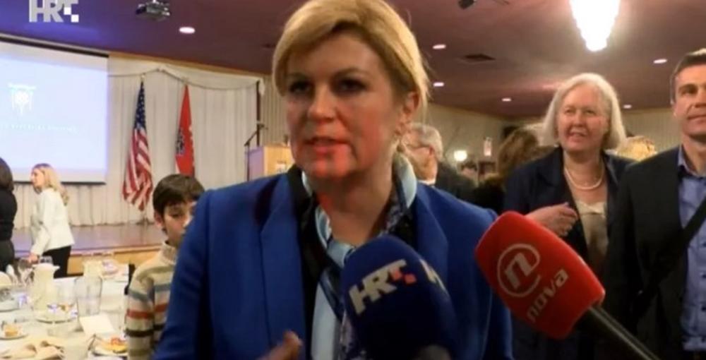 - Došli smo ovamo kao među prijatelje, među porodicu. Ove ljude ovde smatram svojom porodicom, kao, uostalom, celu našu hrvatsku zajednicu - izjavila je tada, i to baš u dvorani u kojoj inače visi portret Ante Pavelića. Nije poznato da li je Pavelićev portret tada bio uklonjen ili se Kolinda pod njime družila s hrvatskom dijasporom.