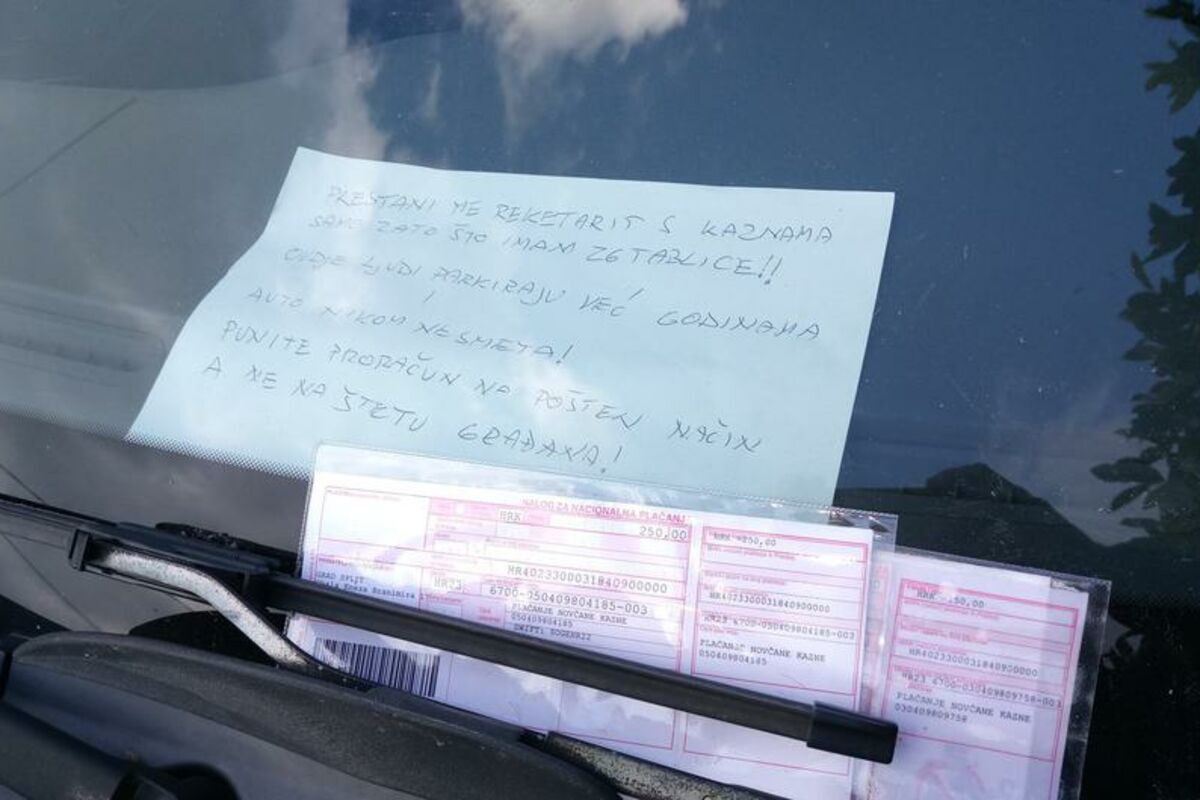 Jedan je vozač automobila sa zagrebačkim tablicama ostavio poruku splitskim redarima koji su mu ostavili nekoliko kazni ispod brisača zbog neplaćenog parkinga.