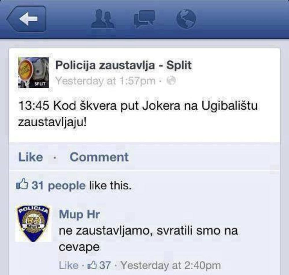 Naime, zvanična stranica MUP-a u komentaru je šaljivo odgovorila na ovaj post. Pogledajte sami.