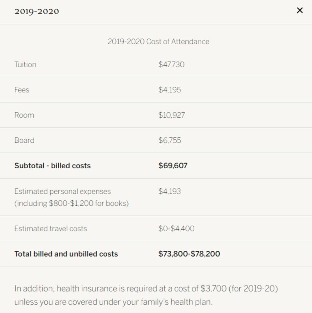 Inače, ovo je cenovnik za školsku 2019/20. godinu na Harvardu: