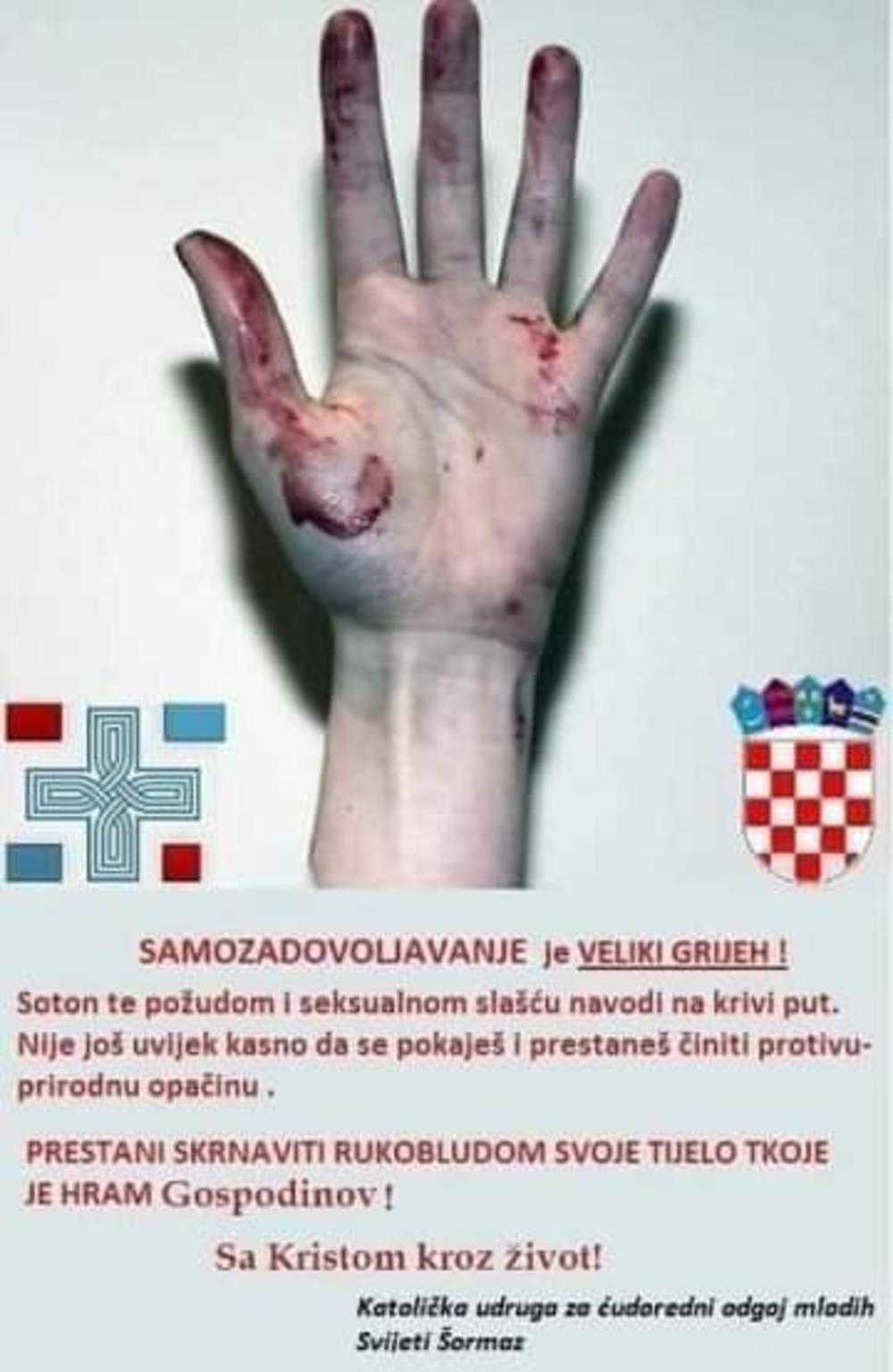 - Soton te požudom i seksualnom slašću navodi na krivi put. Nije još uvek kasno da se pokaješ i prestaneš činiti protivu-prirodnu opačinu. Prestani skrnaviti rukobludom svoje telo koje je hram Gospodino! - stoji na letku, uz poznatu frazu: "S Kristom kroz život".
