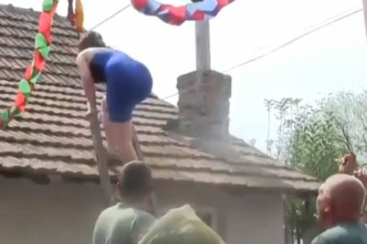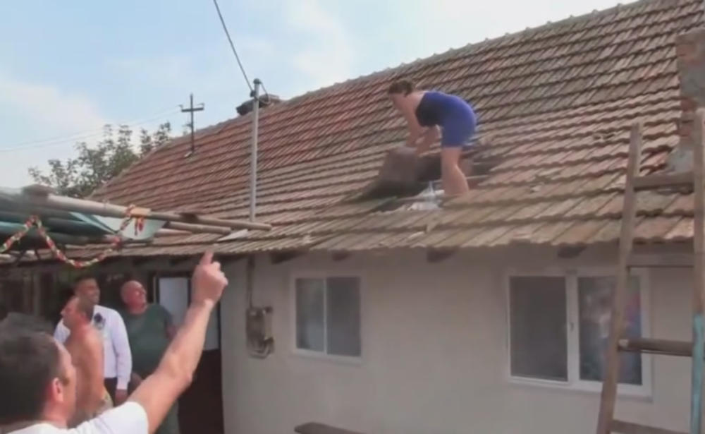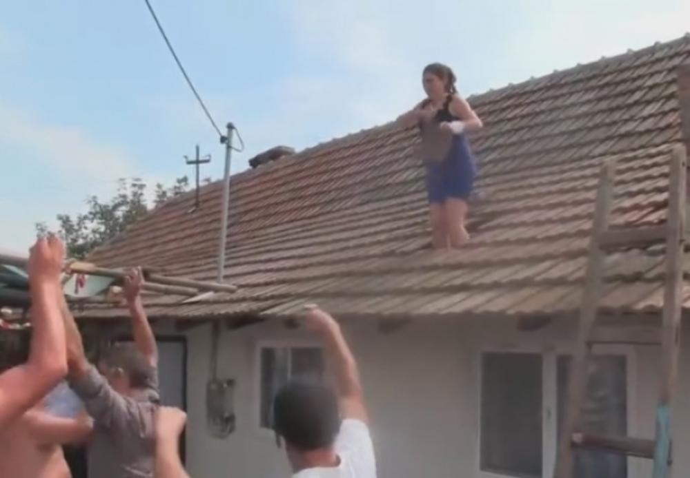 Žena koja je navodno bila venčana kuma, uz svirku trubača, popela se na krov i počela da razbija crep!