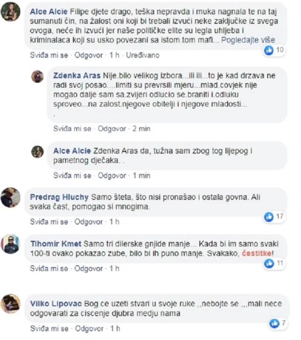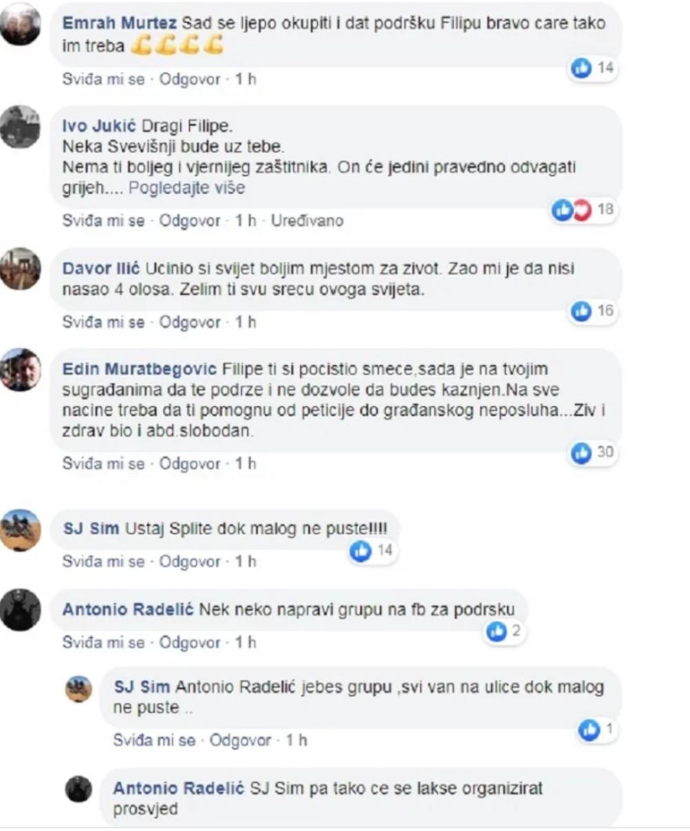 Ljudi podržavaju ubicu, sudeći po komentarima na Fejsbuku. Zavadlavu ispod slika ostavljaju komentare podrške.