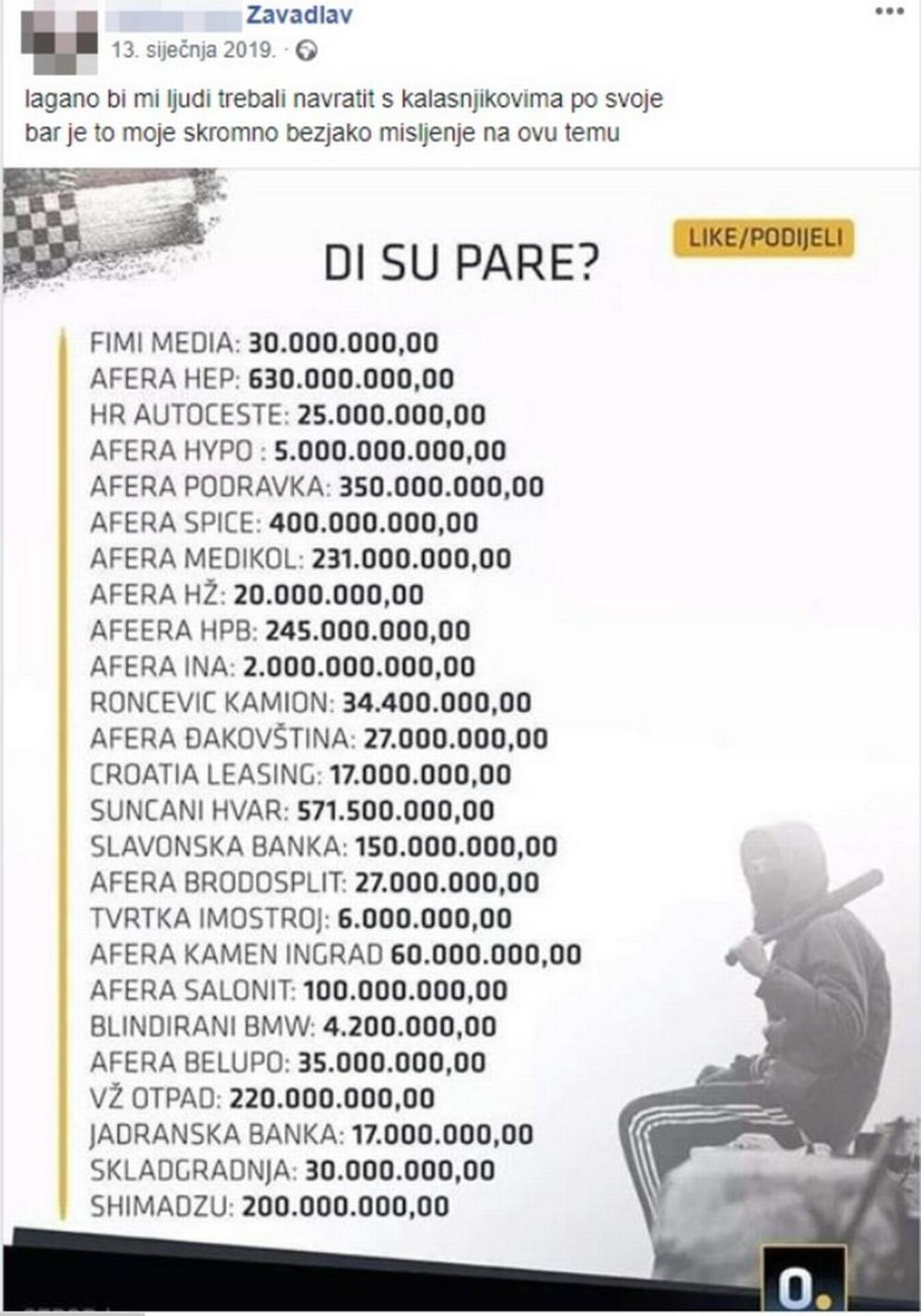 U tom kontekstu je zanimljivo pročitati što je Filipov brat objavio na Fejsbuku pre tačno godinu dana, piše Dalmatinski portal. Uz nabrojene hrvatske afere pljačkanja firmi, on je napisao: