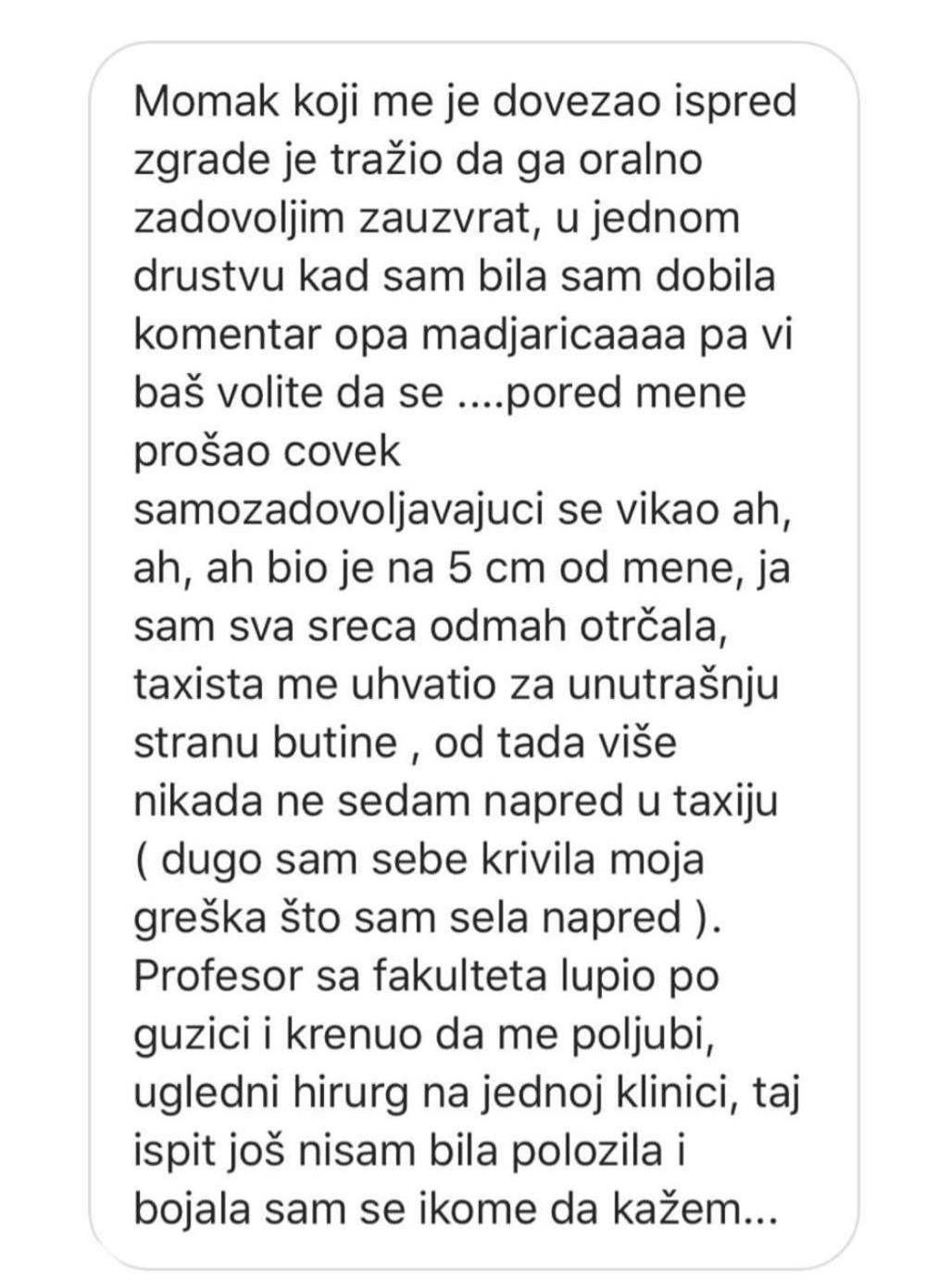 Svojom objavom pokrenula je lavinu reakcija žena iz cele regije koje ju prate na Instagramu. U manje od nedelju dana na stotine anonimnih žena poslalo joj je poruke s opisima kako su bile seksualno uznemiravane. Zatrpale su joj, kako kaže, inbox potresnim ispovestima. Nana je odlučila sve da objavi kako bi dala podršku ostalim ženama koje su prošle kroz sličan pakao...