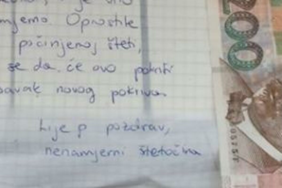 Naime, objavljena je fotografija s porukom ostavljenom na automobilu, pored koje se nalazi i novčanica od 200 kuna, a razlog je nenamerno počinjena šteta.