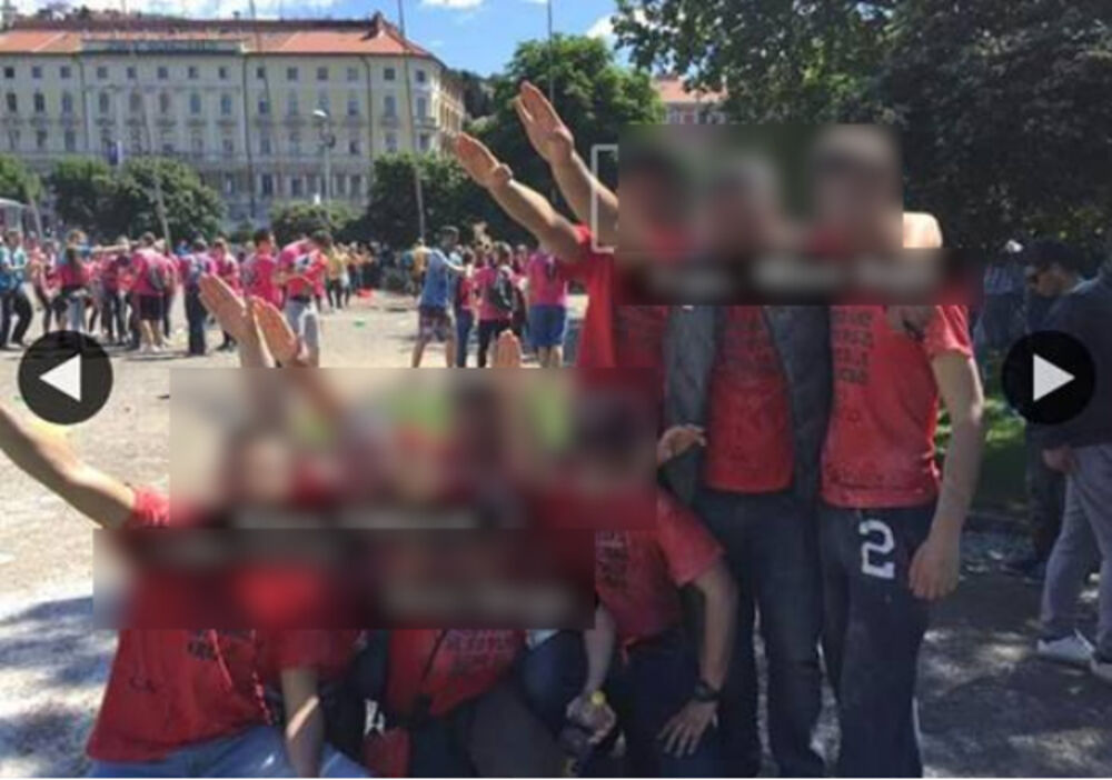Maturanti iz Rijeke u Hrvatskoj proslavili su danas kraj škole na centralnom gradskom trgu podignutim rukama u nacistički pozdrav, piše portal Index.hr