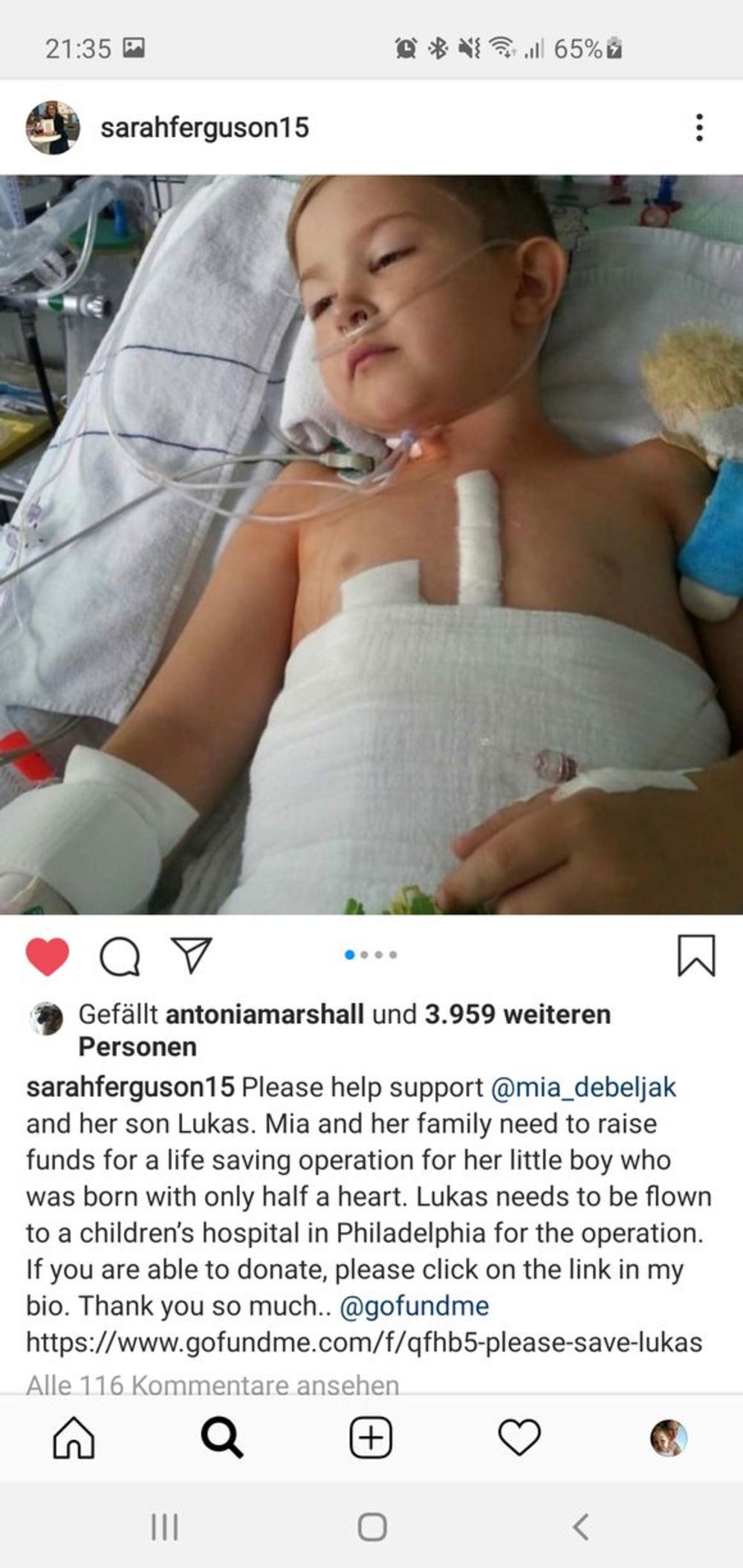 - Sara Ferguson, vojvotkinja od Jorka, objavila je post na Instagramu o mom sinu, ona i cela njena porodica vrlo su bogati ljudi. Toliko smo bili srećni i osećali olakšanje, mislili smo da ćemo možda napokon spasiti svog malog anđela, ali ne. Ništa nisu donirali, ona je samo objavila Lukasovu priču i nije to podelila sa svojim bogatim kćerima koje su doslovno princeze. Takođe nas je izignorisala odmah nakon toga i nekoliko dana kasnije iz svoje biografije na Instagramu izbrisala link s našom GoFundMe kampanjom. Nikad nisam ni razgovarala s vojvotkinjom od Jorka, nisam od nje dobila nikakvu simpatiju ni donaciju, bila sam u kontaktu samo s njenom bliskom prijateljicom - ističe Mia, koja je vojvotkinju pokušala razotkriti i u britanskim medijima, kaže, ali novinarka ju je, nakon što je proverila priču s vojvotkinjom, zaboravila i nije ništa objavila, tvrdi Mia.