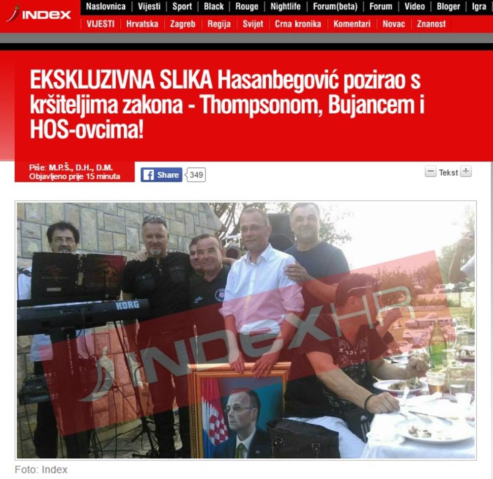 Hrvatski portal “Index.hr” objavio je ekskluzivnu fotografiju na kojoj ministar u tehničkoj vladi Zlatko Hasanbegović pozira sa kontroverznim pevačem Markom Perkovićem Tompsonom i pripadnicima Devete bojne HOS “Rafel vitez Boban”, koji su tokom rata u Hrvatskoj sebe otvoreno nazivali ustašama i koji su veliki poklonici NDH.