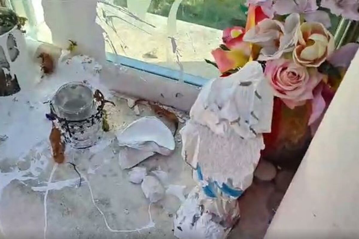 Reč je o kipu visokom 30-tak centimetara koji je razlomljen na nekoliko delova. Vernici su pokušali da saniraju štetu, ali kipu i dalje nedostaje glava. Osim toga, na licu mesta je sve ispolivano masnom belom farbom za zidove. Nedaleko od toga nalazi se stara zaštićena maslina i dečji vrtić.