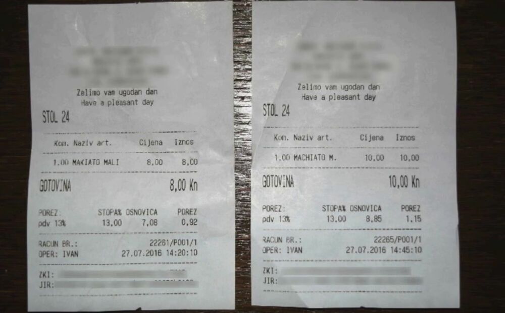 Potom je on naručio istu kafu na engleskom. Naplaćena mu je 10 kuna, a morao je posebno tražiti račun. Treba li reći da nije dobio ni vodu ni šećer?