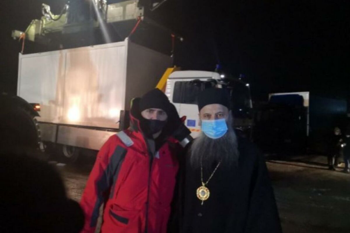 Mitropolit zagrebačko-ljubljanski Porfirije sačekao je u petak 8. januara u Petrinji pomoć grada Beograda koja je u Petrinju upućena u znak podrške nakon jakog zemljotresa, 29. decembra
