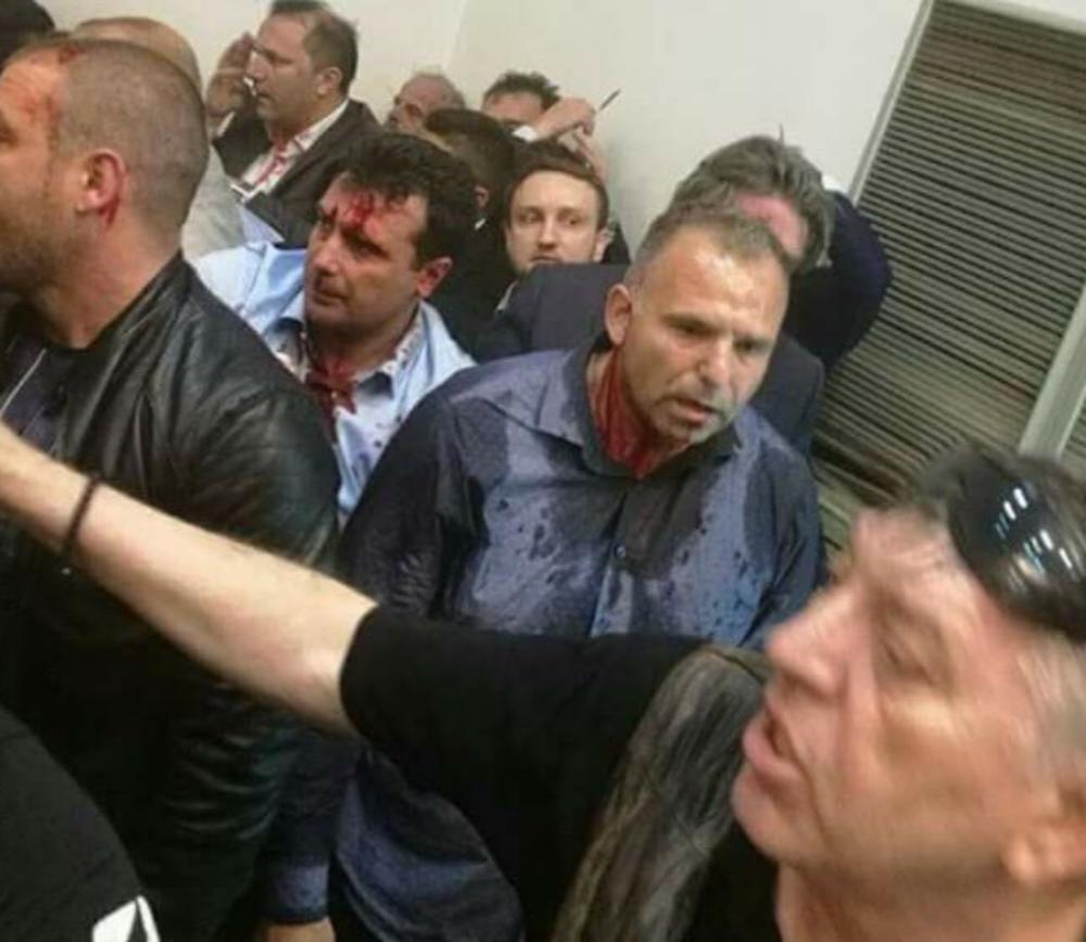 Oni su fizički nasrnuli i na lidera SDSM Zorana Zaeva i poslanika te stranke Damjana Mančevskog, kojima su takođe razbijene glave! Među povređenima su i Petre Šilegov, Maksim Dimitrievski, Radmila Šekerinska, Damjan Mančevski, a batine su dobili i neki novinari.