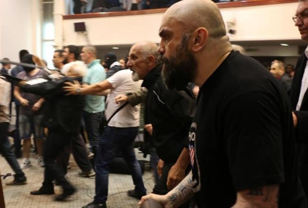 FAŠISTI GRUEVSKOG SA USTAŠKIM OBELEŽJIMA TUKLI POSLANIKE: Pogledajte natpis ZA DOM SPREMNI na grudima batinaša! (VIDEO)