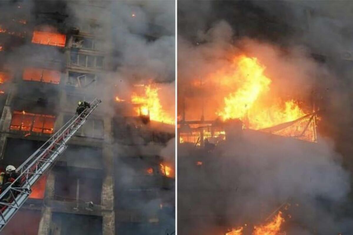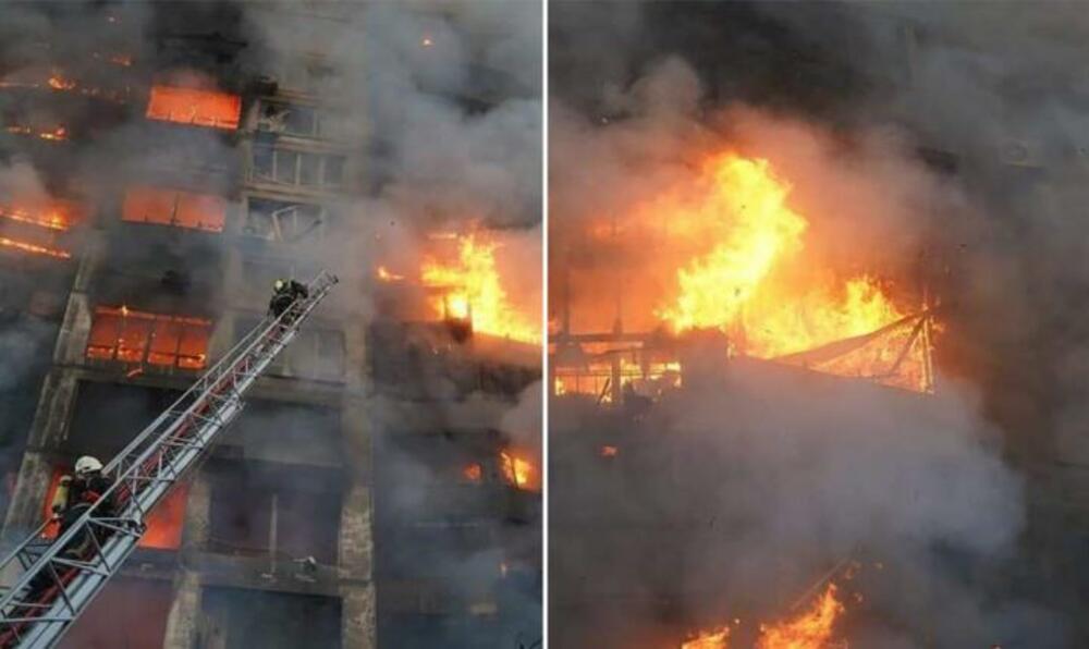 JEZIV PRIZOR NAKON EKSPLOZIJE U KIJEVU: Vatra progutala zgradu, stanari u suzama!