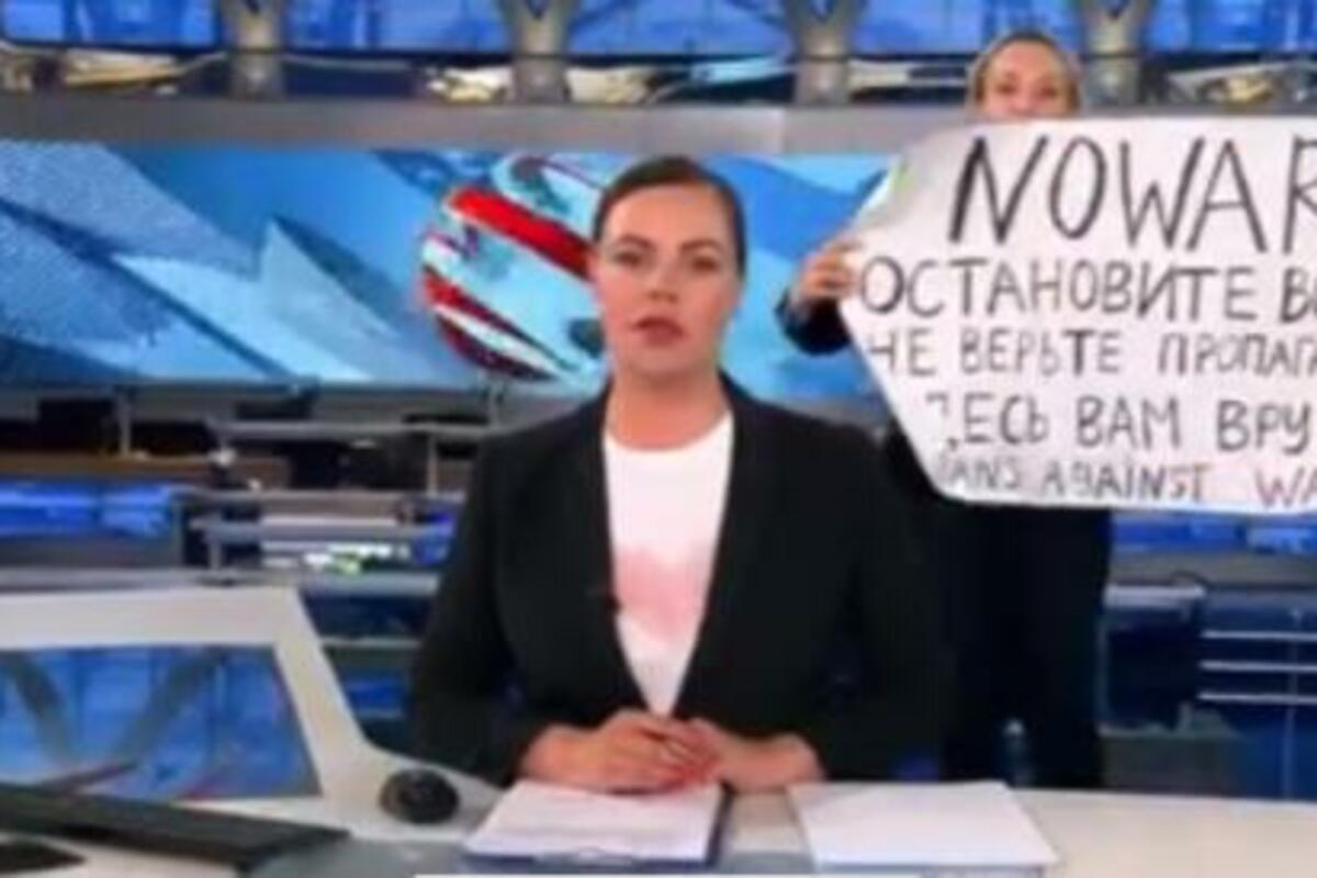 Njen glas mogao se čuti za vreme emisije koja je išla uživo, govorila je "Ne ratu, zaustavite rat" pre nego što je direktor programa prekinuo snimak i pustio prethodno snimljen izveštaj.