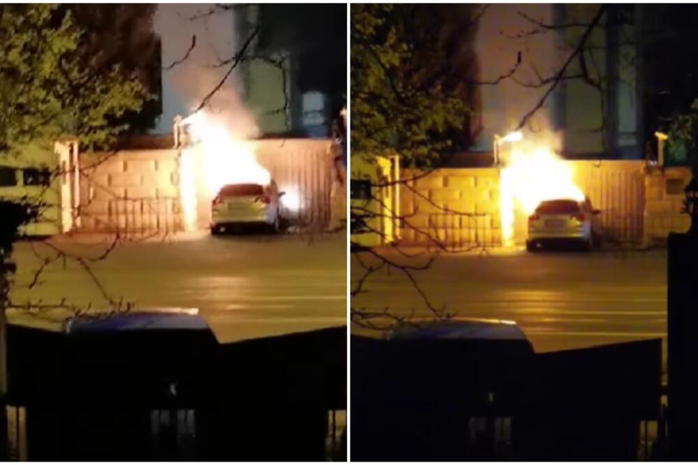 PRVE SCENE IZ BUKUREŠTA! Automobil u plamenu ispred ruske ambasade, vozač izgoreo za volanom (VIDEO)