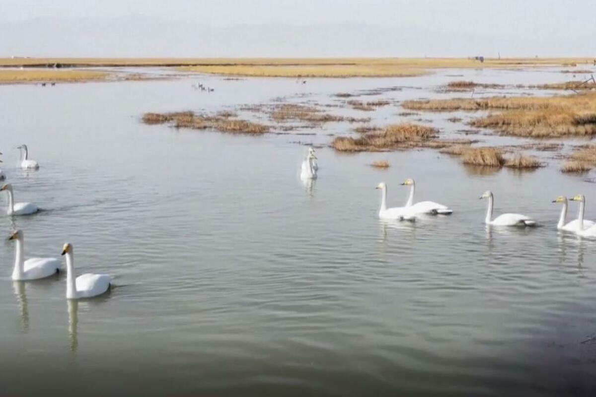 U močvarnom području jezera Sugan u okrugu Aksaj, provincija Gansu, porasla je temperatura i led i sneg su se otopili. Ptice kao što su čaplje, divlje guske i divlje patke su migrirale ovde, dodajući vitalnosti tihom visoravnom jezeru.