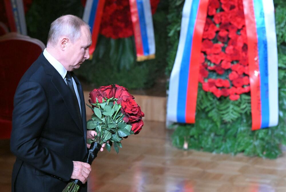 Putin je na oproštajnu ceremoniju stigao sa buketom crvenih ruža, koji je spustio pored sanduka.