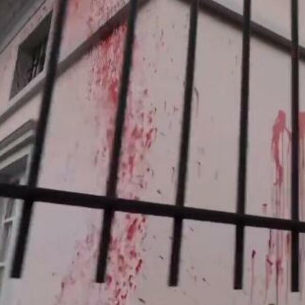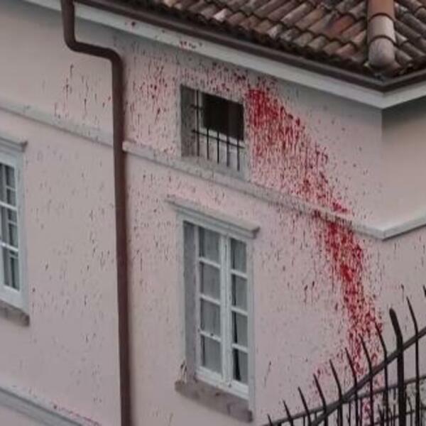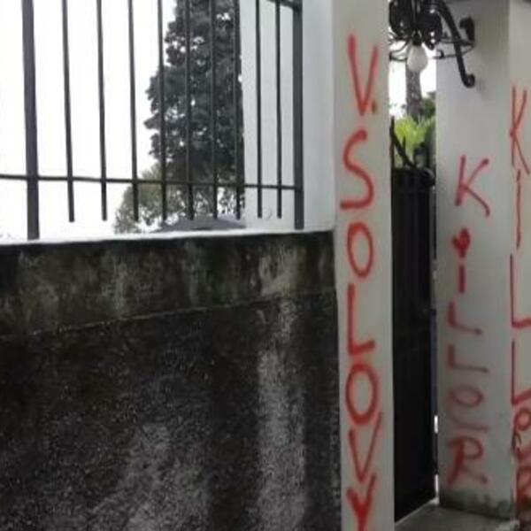 Vila je polivena crvenom bojom na kapiji sa natpisom "Nema rata". Crvena farba izručena je i u bazen.