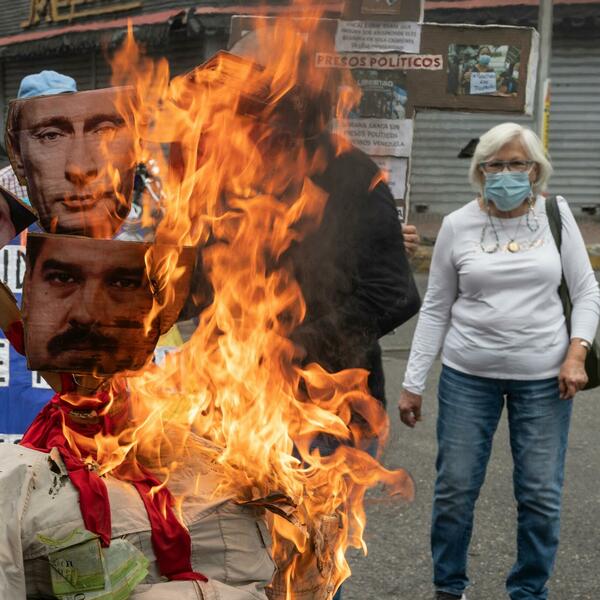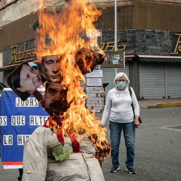 Velika lutka sa starom odećom i četiri glave, među kojima su lica predsednika Venecuele i Rusije, Nikolasa Madura (Nicolas) i Vladimira Putina, spaljena je danas u Karakasu na takozvanoj Judinoj lomači koja je deo tradicije za vreme Uskrsa.