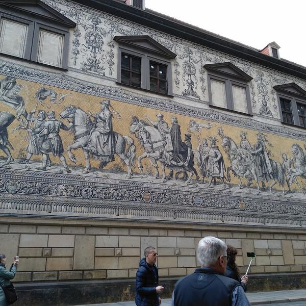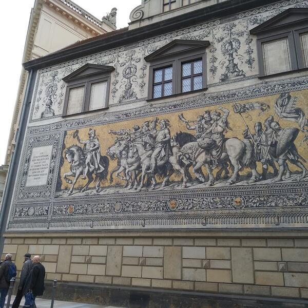 Istočno od Drezdenskog zamka se nalazi porcelanski mural, izrađen od 23.000 pločica na kojima su naslikani saksonski kraljevi u periodu od 1127-1904. godine. Dugačak je čak 102. metra.