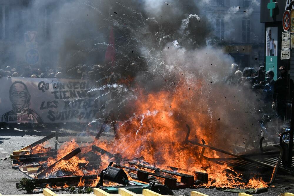Većina skupova bila je mirna, ali je policija u Parizu intervenisala nakon što su anarhisti iz "Crnog bloka" pokušali da podignu barikadu u ulici u blizini Trga Republike, navodi se u saopštenju policije. Restoran "Mekdonalds" i agencija za nekretnine na trgu Leon Blum su opljačkani, prozori su im polomljeni, a kante za smeće zapaljene.