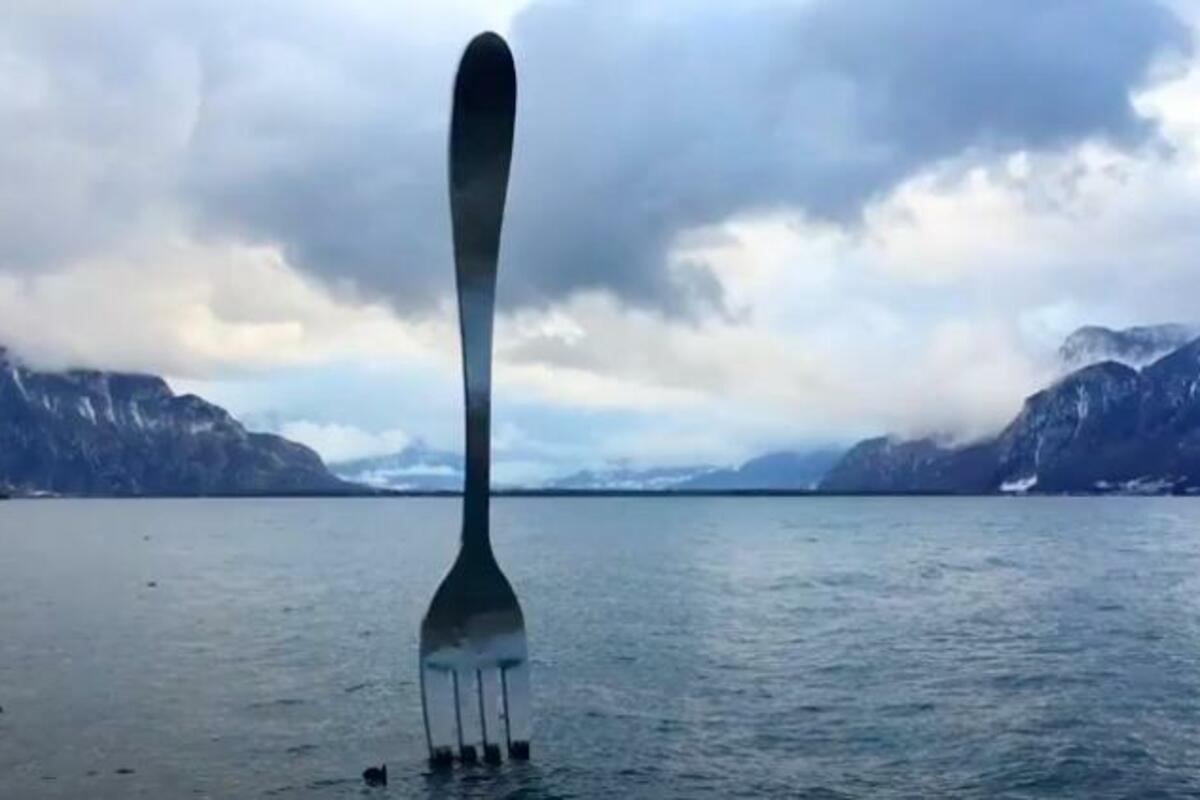 Da, dobro ste pročitali: iz Ženevskog jezera u ovom delu obale viri ogromna viljuška. Neobičan spomenik zvan La Fourchette postavljen je 1995. godine u čast 10. godišnjici Alimentarijuma, gradskog muzeja posvećenog ishrani. Napravio ga je švajcarski umetnik Žan Pjer Caug.