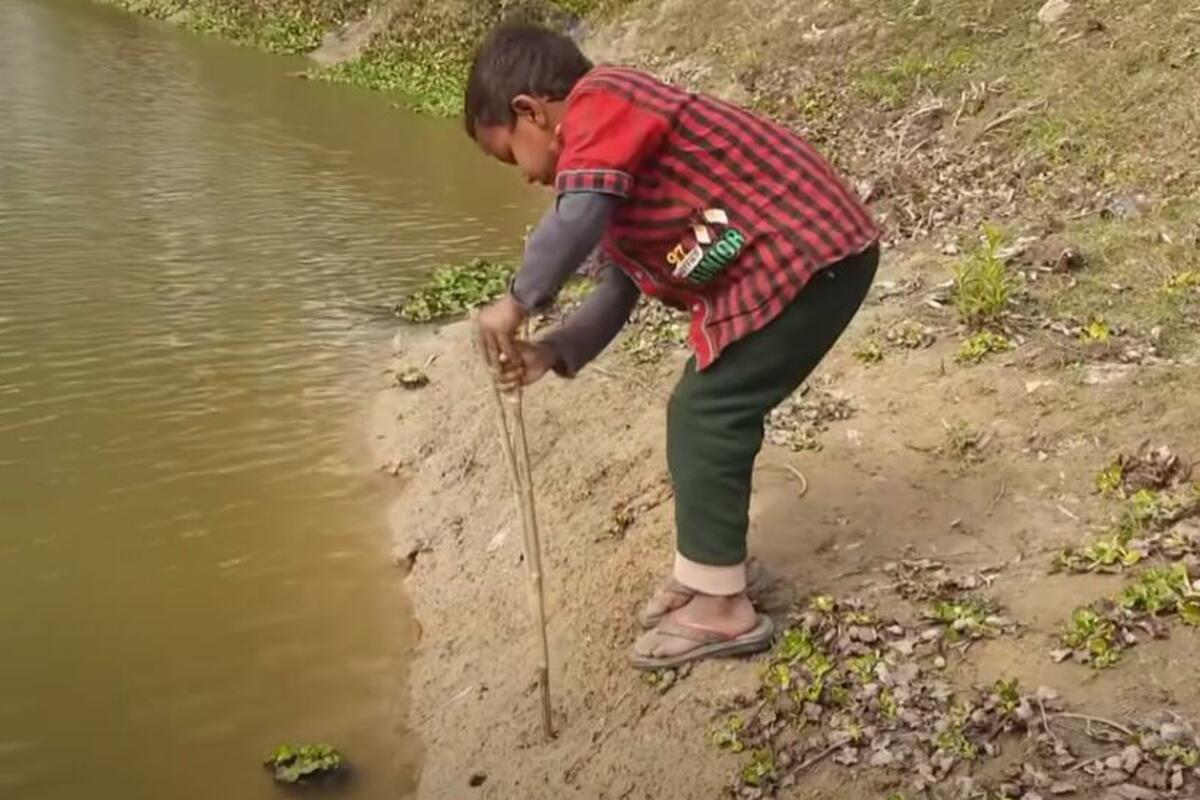 Klinac je pokazao izuzetnu veštinu u onome što radi. Pecao je koristeći nekoliko drvenih štapova, praznih plastičnih flaša, užadi sa udicama. Imao je testo koje je koristio kao mamac.