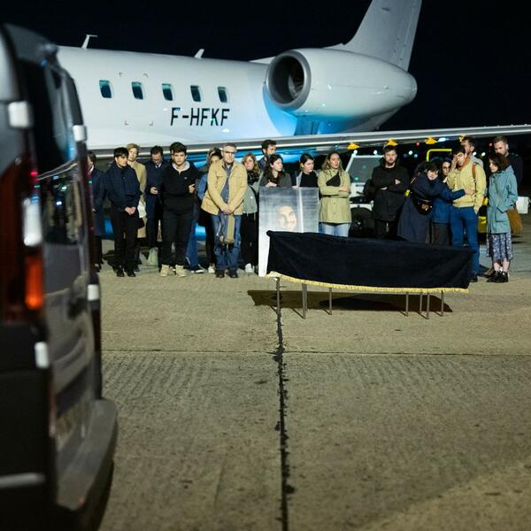 Posmrtni ostaci novinara stigli su na pariski aerodrom Burže iz Kijeva oko 3.00 po lokalnom vremenu. Ispred kovčega prekrivenog crnim na aerodromu održan je minut ćutanja.