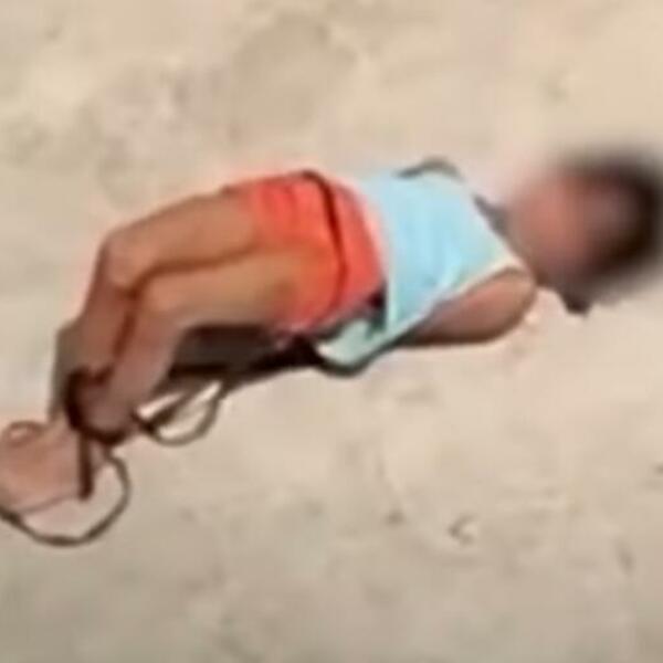 Na snimku koji je snimio komšija i koji je naširoko podeljen na društvenim mrežama, dete, odeveno u šorts i majicu bez rukava, ima spojene gležnjeve, a ruke vezane iza leđa.
