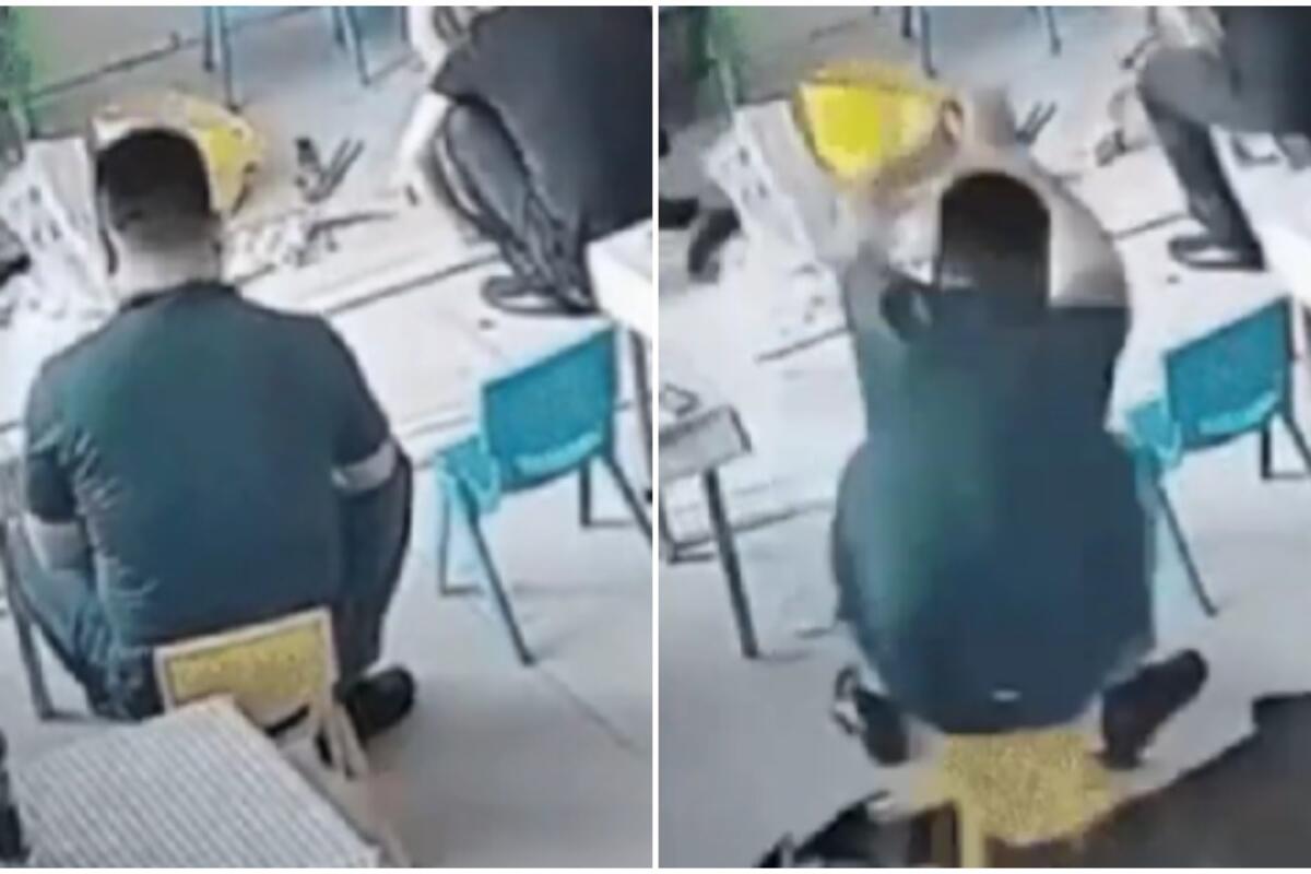 Jedan od muškaraca je sedeo na stolici, da bi se u sledećem trenutku pod doslovno otvorio pod njim.