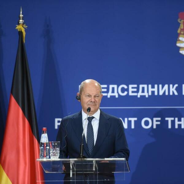 Nemački kancelar se nakon toga nasmejao. Usledila je poduža "dramska pauza" tokom koje su novinari očekivali odgovor nemačkog zvaničnika. Umesto toga Šolc je odgovorio:
