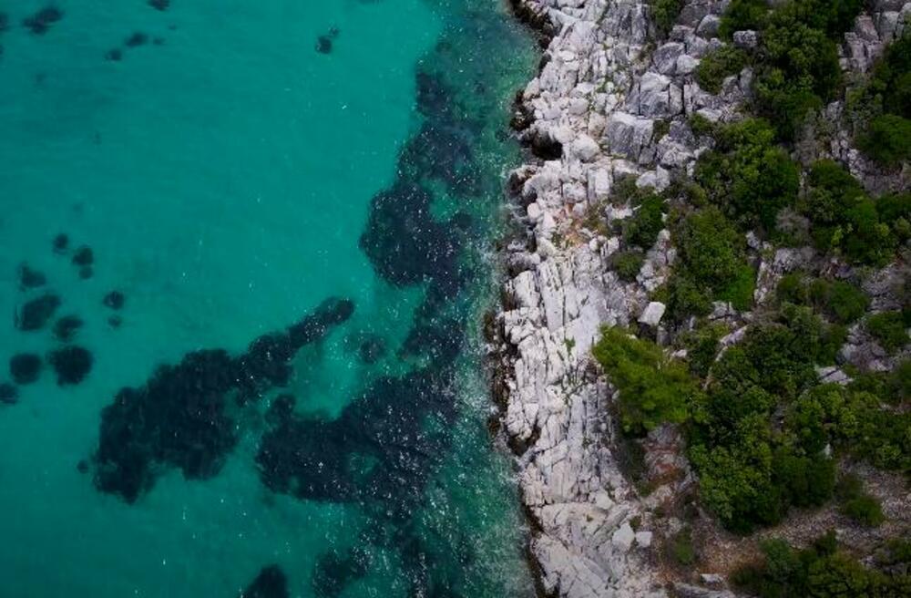 Beli pesak i mermerne ljuske na morskom dnu daju vodi zadivljujuću smaragdnu boju, koja podseća na tropsku obalu.