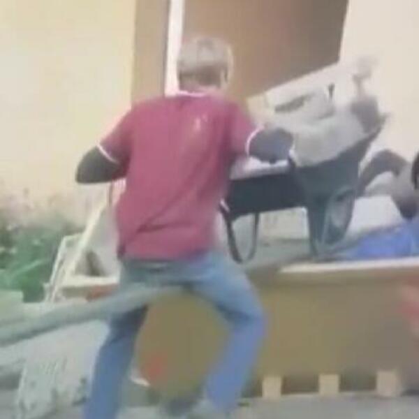 Na snimku možemo videti muškarca koji je pokušao da prebaci kamene blokove uz pomoć kolica, ali na njegovu muku, to nikako nije uspevao da učini.