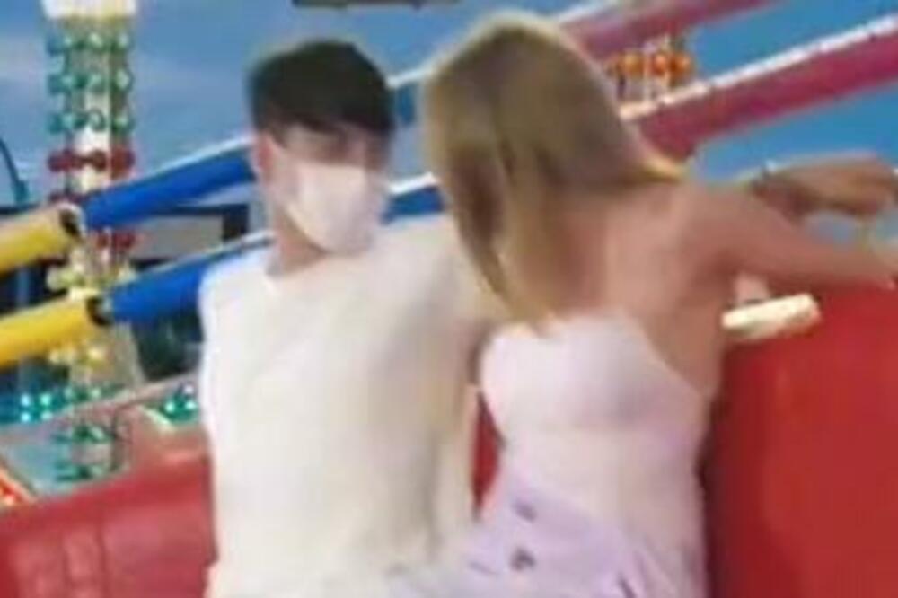 Delovalo je kao da je devojci neprijatno jer je isprava pokušavala da skloni njegovu nogu udarajući rukom o nju, a neki su u komentarima ocenili da se on ponaša previše zaštičnički.