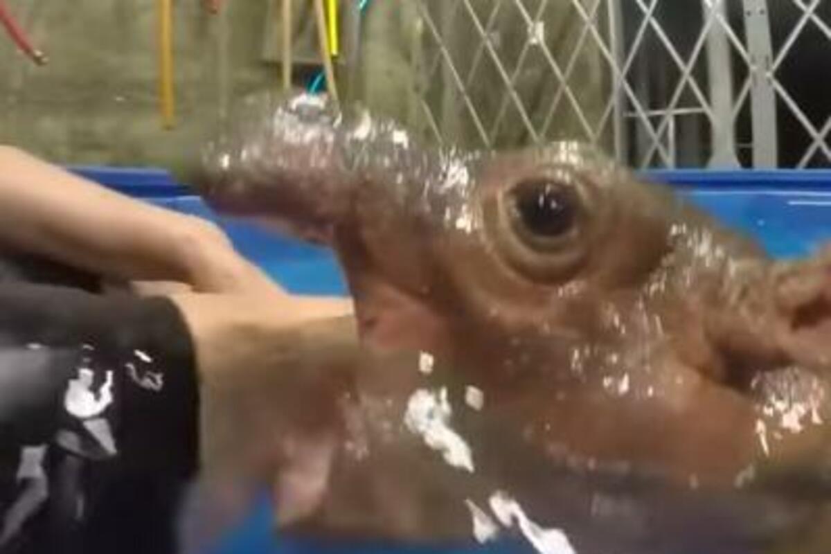 Prevremeno rođena beba nilskog konja, Fiona, na ovom snimku ima samo meseca.
